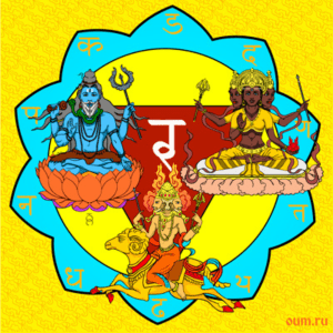 - Yantra: cerchio con inscritto un triangolo con il vertice verso il basso contenente il linga